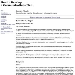 Sample Outline for a Strategic Communication Action Plan The following is an example of an outline for a strategic communication action plan for ... Read Here